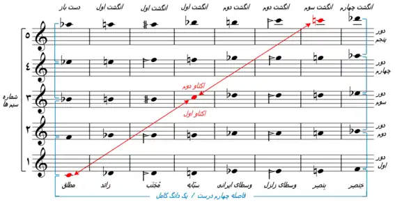 - «دو» تا «فا» (چهارم درست)، «دو» تا «فا سری» (چهارم بیشدرست)