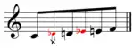 - دو، (۲ فاصله زائد)، ر، می بمل (فاصله وسطی)، می، فا.