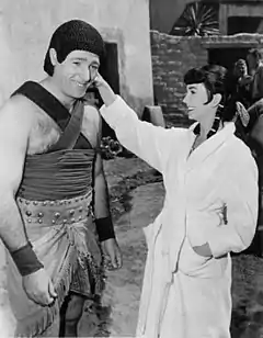 ![]() Fortune Gordien, in costume for film سینوهه, with جین سیمونز in 1954 | ||||||||||||||||||||||