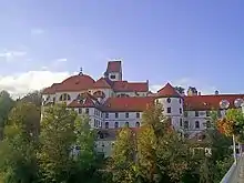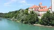 در دامنه کوه های آلپ و بر کرانه رود لخ جای دارد، تنها ۵ کیلومتر تا مرز اتریش فاصله داشته و جمعیتی بالغ بر ۱۴۰۰۰ تن را در خود جای داده است.