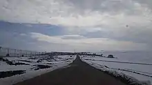 از یک سر بالائی کوتاه به روستای فولادلو می رسد.اخیرا" جاده سه راه پولادلو با اتصال به شهر جعفرآباد به