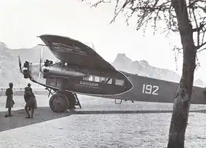 | سوئیسایر Fokker F.VIIb-3 m (CH-192) piloted by Walter Mittelholzer در کسلا (سودان)، فوریه ۱۹۳۴. | |