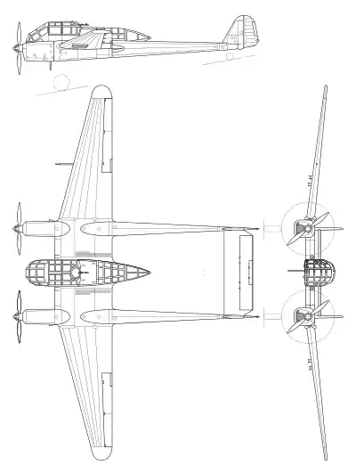 - نیرومحرکه: دو موتور پیستونی ۱۲ سیلندر آرگوس اِیاس ۴۱۰ای-۱ خنک شونده با هوا: هر یک ۴۶۰ اسب بخار (۳۴۰ کیلووات)