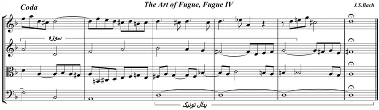 ۴. صدای چهارم جواب سوژه را در «تونیک» یا «دومینانت» میدهد و سه صدای دیگر بر اساس کنترپوان، سوژه را همراهی میکنند.[10]