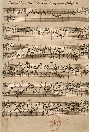 فوگ یا فوگا[persian-alpha 8] از ریشهای لاتین و کلمهای قدیمی است و درلغت به معنی فرار، ناپایداری و پرواز (از شاخهای به شاخهای پریدن) است. این کلمه در آثار مصنّفان کهن نیز یافت میشود ولی با مفهومی که موسیقیدانان جدیدتر به کار بردهاند متفاوت است. در دوره باروک نام فوگ به نوعی از آهنگسازی منظم و گسترده نسبت داده میشد و آن را عالیترین شیوهٔ نگارش در دانشِ کنترپوان میدانستند.[1]