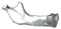 در حد قدامی کنار فوقانی راموس یک زائده استخوانی سهگوش اتّصال دارد که قاعدهآن به سمت پایین و رأس آن در بالا قرار دارد. بهاین زائده ماهیچه گیجگاهی (تمپورالیس) اتصال دارد.