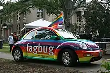 فولکسواگن بیتل به نام فگ باگ که با ترکیب رنگ هم جنس گرایان نقاشی شده