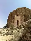 بر فراز کوه تنگاب، قلعه دختر در زمان ساسانی ساخته شده که پلکانهایی ارتباط فضاهای داخلی آن را میسر میسازد. این قلعه با استفاده از مصالح گچ و سنگ ساخته شده و دارای کاربرد نظامی و دفاعی است[10]. قلعه دختر استان فارس در شش کیلومتری جاده فیروزآباد به شیراز در دامنه کوهی مشرف به جاده قرار دارد که پس از طی مسافتی حدود ۳۰۰ متر میتوان به قلعه دختر رسید. معماران رومی مشکل قرار دادن سقفی مدور بر روی بنایی چهار گوش در گوشهها را با جلو آوردن تدریجی سنگ یا آجرها به شکلی که پیوسته مدور تر میشد، حل کردهاند اما در قلعه دختر شیوه جدیدی به کار گرفته شد که همانا استفاده از سکنج در گوشه هاست. قلعه دختر تماماً از سنگهای درشت ساخته و سنگهای نما، تراشیده شدهاند ولی سنگهای پیها و داخل دیوارها از قلوه سنگهای درشت رودخانهای تشکیل شدهاند. عظمت بنای قلعه دختر، مبهوتکنندهاست و دیوارهای بلند آن با همه شکستگی و ریخته شدن، هنوز هم شکوهی خیرهکننده دارند.[11]