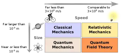 - مکانیک کلاسیک (توصیف رفتار اجسامی که اندازهای معمولی دارند و با سرعتی معمولی در حال حرکتاند)