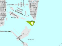 ![]() View of Fisher Island; South Pointe و Government Cut foreground, Virginia Key background | |