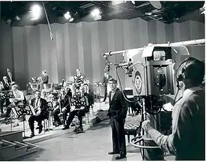 اعضای فیلارمونیک نیویورک با لنارد برنستاین در استودیوی تلویزیون