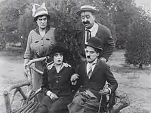 ![]() برخلاف عقربه ساعت از بالا: فیلیس آلن، مک سوین، چارلز چاپلین و میبل نورماند در آشنایی (۱۹۱۴) | |