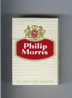 مشارکتکنندگان ویکیپدیا. «Philip_Morris_(cigarette)». در دانشنامهٔ ویکیپدیای انگلیسی، بازبینیشده در ۲۲/۳/۲۰۱۸.