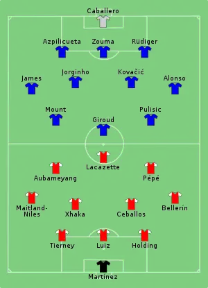 این دو تیم رقابت دیرینهای در قالب دربی لندن دارند. این فینال تکرار دو فینال جام حذفی ۲۰۰۲ و ۲۰۱۷ بود که در هر دو بازی، پیروزی برای آرسنال رقم خورد. این بازی همچنین تکرار فینال لیگ اروپا در سال گذشته بود که به قهرمانی چلسی ختم شد.[16] آرسنال، با در دست داشتن رکورد ۱۳ قهرمانی در جام حذفی، به دنبال ارتقاء این رکورد بود.[17] با توجه به همهگیری ویروس کرونا، این مسابقه علیرغم برنامهریزی اولیه برای حضور محدود طرفداران، پشت درهای بسته و بدون تماشاگر برگزار شد.[18][19] آنتونی تیلور به عنوان داور این بازی منصوب شد، و با قضاوتی که پیش از این در فینال ۲۰۱۷ داشت، تبدیل به اولین داوری شد که پس از آرتور کینگزکات در سال ۱۹۰۱، برای دومین بار فینال جام حذفی را قضاوت میکند. هر داور در طول دوران قضاوت خود تنها یک بار فرصت حضور در فینال جام حذفی را پیدا میکند و از آنجا که این بازی بدون تماشاگر برگزار میشد اتحادیه فوتبال انگلیس نمیخواست خانواده داوری که اولین فینال خود را تجربه میکند، از حضور در مسابقه باز بماند.[20] سرمربی آرسنال، میکل آرتتا و سرمربی چلسی، فرانک لمپارد، به عنوان بازیکن، به ترتیب دو و چهار جام حذفی را برای تیمهایی که در فینال ۲۰۲۰ سرمربیگری میکردند، به ارمغان آورده بودند.