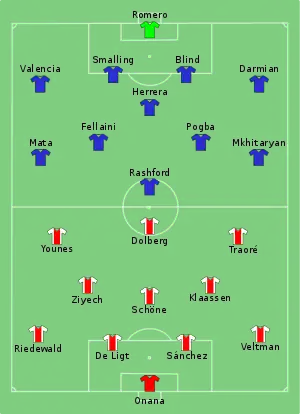 - "Full Time Report Final – Ajax v Manchester United" (PDF). UEFA.com. Union of European Football Associations. 24 May 2017. Retrieved 24 May 2017.