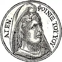 او از چند همسر خود صاحب فرزندانی شد. از ازدواجش با کاسیوپیا، دختری به نام کارمه و سه پسر به نامهای کیلیکس، فینئوس و دوریکلوس به دنیا آمدند؛ به علاوه، از این طریق پدرخواندۀ پسر زئوس، آتیمیوس شد. همچنین آدونیس، حاصل ازدواج او با آلفسیبوآ بود. بنابه روایت ایلیاد، ائوروپه، دختر او -و نه خواهرش- بود. همچنین براساس نوشتۀ پریمد، ائوروپه، یکی از دو دختر فینیکس و اوینئوس بود ( دختر دیگر آنها، آستیپالهآ نام داشت).