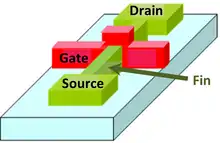 یک ترانزیستور اثر میدان برجسته (FinFET) یک قطعه چندگیتی است، یک ماسفت (ترانزیستور اثر میدان فلزی-اکسید-نیمرسانا) که روی یک زیرلایه ساخته شده است که گیت در دو، سه یا چهار طرف کانال قرار دارد یا دور کانال پیچیده شده است، یک ساختار گیت دوتایی را تشکیل میدهد. به این قطعات نام عمومی «فینفت» داده شده است، زیرا ناحیه سورس/درین برجستگیهایی را روی سطح سیلیکون تشکیل میدهد. قطعات فینفت نسبت به فناوری مسطح سیماس (مکمل فلزی-اکسید-نیمرسانا) به طور قابل توجهی کلیدزنی سریعتر و چگالی جریان بیشتری دارند.