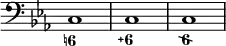 وقتی یک علامت عرضی به تنهایی و بدون شماره نشان داده شود، بدین معنی است که سوم آکورد باید به بالا یا پایین تغییر کند،[3] و اگر شماره داشته باشد، بهطور مشخص روی آن عدد تغییر اعمال میشود.[2] در مثال زیر دو نمونه از تغییر نت با عدد و بدون عدد است: