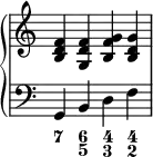 در مثال بالا باید توجه کرد که در نتیجهٔ این خط ممتد و تغییر خط باس، وضعیت آکورد از (6
