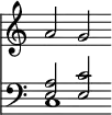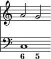 در مثال بالا، نت باس، نت دو است و اعداد ۴ و ۶، نشان میدهد که این فاصله باید بالاتر از نت دو اجرا شود که حاصل آن، یک نت فا و لا است. به عبارتی دیگر معکوس دوم آکورد فا ماژور است.