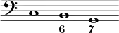 در مثال زیر، اعداد فاصلههای بالاتر از نت نوشتهشده را نشان میدهد که باید اجرا شود:[2]