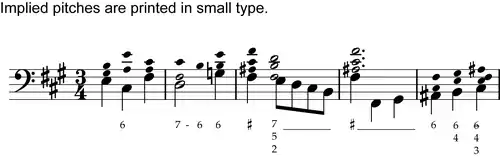 - مشارکتکنندگان ویکیپدیا. «Figured bass». در دانشنامهٔ ویکیپدیای انگلیسی، بازبینیشده در ۱۰ دسامبر ۲۰۲۰.