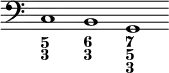 2)، نشانگر وضعیت () است. از دیدگاه نویسندهٔ فیگور باس خلاصهٔ این اعداد به وضوح معکوس سوم آکورد هفت را نشان میدهد. بنابر این نوازنده نتیجه میگیرد که بهطور واضح فاصلهٔ بعدی باید عدد «6» قرار داشته باشد. در بسیاری از موارد میتوان از نماد فیگور باس چشمپوشی کرد و این هنگامی است که حرکت و توالی آکورد و ملودی کاملاً مشخص است.