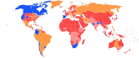 قانونی بودن ماری جوآنا بسته به کشور متفاوت است. در بیشتر کشورها داشتن ماری جوآنا غیرقانونیست و از زمان ممنوعیت گستردهٔ ماری جوآنا در اواخر دههٔ ۱۹۳۰ غیرقانونی بودهاست.[1] به هر روی، بسیاری از کشورها مخصوصاً در آمریکای شمالی، آمریکای جنوبی و اروپا داشتن مقادیر اندک ماری جوانا را جرم زدایی کردهاند. علاوه بر این در هلند، کره شمالی،[2] و آمریکا و کانادا داشتن آن قانونی یا بهطور مؤثر قانونی است زیرا دولت فدرال اعلام کردهاست تصویب این قانونی بودن را سد نخواهد کرد.[3]