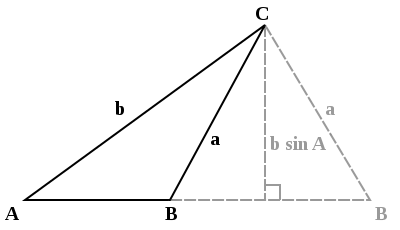 - ضلع a بزرگتر از ارتفاع مثلث راستگوشه با زاویهٔ A و وتر b باشد (a> b sin A).