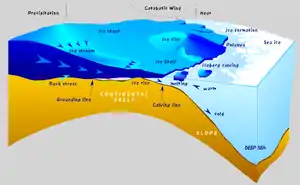 - مشارکتکنندگان ویکیپدیا. «Ice rise». در دانشنامهٔ ویکیپدیای انگلیسی، بازبینیشده در ۱۴ آوریل ۲۰۲۰.