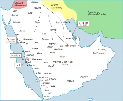 - قبایل بنیحنیفه که محل اسکانشان در منطقه یَمامه در شرق عربستان بود، ازنظر جمعیتی دردرجه دوم قرار میگرفتند.