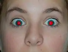 فلاشر قرمزی چشم به کار برده شده در هنگام عکاسی در یک دوربین موبایل
