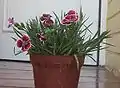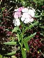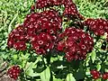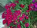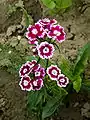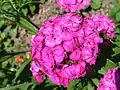 قرنفل گلهای کوچک، مخملی با پنج گلبرگ در نوع کم پَر و به رنگهای صورتی، سفید، قرمز، بنفش و مخلوط سفید و قرمز دارد که به تعداد زیاد در یک گلآذین چترمانند با هم مجتمع میشوند. عمر گلها به چند هفته میرسد.[1] قرنفل گلی است خردبته با گلی معطر که در باغها برای زینت میکارند. قرنفل و میخک را گاه یکی میگیرند. گلهای سفید قرنفل در اثر تابش نور خورشید به رنگ صورتی و قرمز تبدیل میشود و به دلیل فاصله زمانی شکوفایی گلها، در یک بوته رنگهای مختلفی قابل مشاهده است.