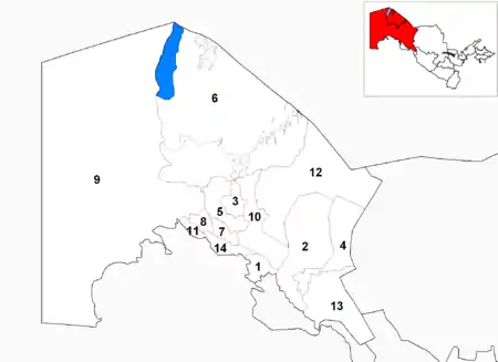 - استان تامدینسکی به مرکزیت شهر تامدیبولاغ (این استان در سال ۱۹۴۳ به استان بخارا (ازبکستان) ضمیمه گشت)