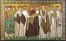 با پایان سده پنجم میلادی قسمت غربی امپراتوری به واحدهای کوچکتری تجزیه شده بودند و که بوسیلهٔ قبایل مهاجمی در ابتدای همین سده به آنان یورش بردهبودند، اداره میشدند.[40] عزل آخرین امپراتور غرب، رومولوس آگوستولوس، در ۴۷۶ م به عنوان تاریخ پایان امپراتوری روم غربی رایج گشتهاست. در سال ۴۹۳ م شبه جزیره ایتالیا بوسیلهٔ اوستروگوتها تسخیر شد.[41] امپراتوری روم شرقی که بیشتر امپراتوری بیزانس نامیده میشود پس از فروپاشی همتای غربیاش، توانایی و نیروی کمی در اختیار داشت تا بتواند ادعاهایش بر مناطق غربی را برآورده ساخته و آنان را زیر کنترل خود دربیاورد. درحالی که هیچیک از پادشاهان جدید در غرب جرئت ادعا و احیای مقام پیشین امپراتوری غربی را به خود راه نمیدادند، امپراتوران بیزانس همچنان ادعایشان را بر روی سرزمینهای غربی حفظ کرده و بر آن تأکید مینمودند ولی کنترل بیزانس بر مناطق غربی نمیتوانست به چیزی فراتر از کنترلی موقتی بدل گردد. بازپسگیری نواحی ساحلی دریای مدیترانه و شبهجزیره ایتالیا (جنگ گوتی) در هنگام امپراتوری ژوستینین یکم (۵۲۷–۵۶۵ در قدرت) تنها تلاش بیزانس و اقدامی موقتی بود و میتوان آن را یک استثنا نامید.[42]