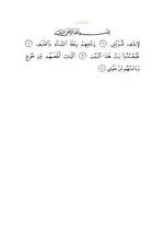﴿بِسمِ الله الرَّحمنِ الرَّحیمِ، لایلَفِ قُرَیْشٍ﴾ ۱ ﴿إِلَفِهِمْ رِحْلَةَ الشتَاءِ وَ الصیْفِ﴾ ۲ ﴿فَلْیَعْبُدُوا رَب هَذَا الْبَیْتِ﴾ ۳ ﴿الَّذِی أَطعَمَهُم مِّن جُوعٍ﴾ ۴ ﴿وَ ءَامَنَهُم مِّنْ خَوْفِ﴾ ۵