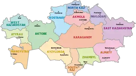 ![]() نقشه قابل کلیک استانهای قزاقستان.v • d • e |