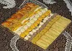 ره آورد شهر قزوین پسته، باقلوا و انواع شیرینی سنتی متنوع از جمله باقلوای لوزی، باقلوای پیچ یا گل رز، شیرینی پادرازی، نان نخودی قزوین (شیرینی نخودی)، نان چرخی، نان برنجی (شیرنی برنجی)، نان بادامی قزوین (شیرینی بادامی)، شیرینی اتابکی (شیرینی ولیعهدی)، نان قندی (شیرینی قندی)، نان نازک (نازک پستهای) است.[21][22][20][23]