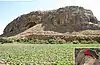 ضلع شمالی تپه، دیوارهٔ سنگی عمودی، مانعی طبیعی در برابر مهاجمان.