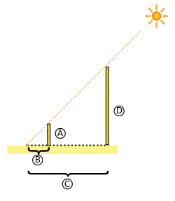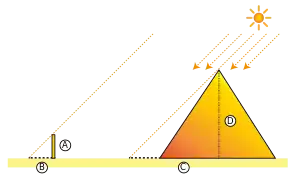 با کمک دادههای بالا میتوان اطلاعات زیر را به دست آورد: حالا با دانستن B , A و c میتوان از قضیه تالس استفاده کرد. و مقدار D همان ارتفاع هرم میباشد.