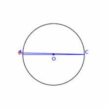 با جابجایی نقطهٔ B روی محیط دایره زاویهٔ B تغییری نمیکند و ۹۰ درجه میماند