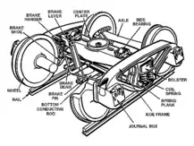 بوژی یک واگن چرخ دار یا گاری الکتریکی است. در اصطلاح مکانیک، بوژی یک شاسی یا چهارچوب چرخ دار است که به وسیله نقلیه متصل میشود. میتوان آن را در محل خود ثابت کرد، مانند یک کامیون باری، یا بر یک مفصل گردنده سوار کرد، مانند یک واگن راهآهن یا یک لوکوموتیو، یا به صورت فنری نصب کرد، مانند سیستم تعلیق چرخ ممتد کاترپیلار. معمولاً بر روی هر واگن یا لوکوموتیو دو بوژی نصب میشود، یکی در یک انتها و دیگری در انتهای دیگر. در یک پیکربندی جایگزین، که اغلب در وسایل نقلیه مفصلی استفاده میشود، بوژیها (اغلب بوژیهای جاکوب) را در زیر اتصال بین واگنها قرار میدهند. اکثر بوژیها دارای دو محور هستند، چرا که سادهترین طراحی است، اما بوژیهایی با حداکثر پنج محور برای واگنهای بارهای بسیار سنگین نیز طراحی و ساخته شدهاند. واگنهای سنگین میتوانند بیش از دو بوژی داشته باشند که از تقویت کنندههای دهانه (Span Bolster) برای تساوی بار و اتصال بوژیها به واگنها استفاده میکنند. معمولاً کف قطار در سطحی بالاتر از بوژیها قرار دارد، اما کف واگن میتواند در بین بوژیها پایینتر باشد، مانند قطارهای دو طبقه برای افزایش فضای داخلی که با مشکل محدودیت ارتفاع مواجه هستند، یا قطارهای بدون پله برای سوار شدن آسان.