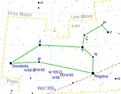 ![]() Regulus is located at the lower right on this map of the constellation. | |