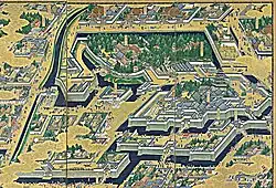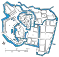 طرحی از قلعه ادو و خندقهای اطراف در سال ۱۸۴۹ میلادی.