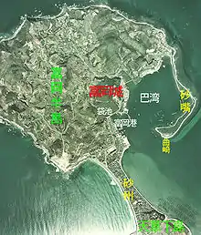 عکس هوایی از منطقه محل قلعه به رنگ قرمز نوشته شده است