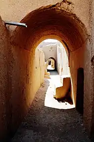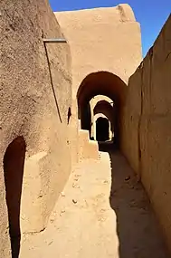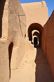 فضای داخلی قلعه به صورت چهار ردیف اتاقکهایی است که سه کوچه در امتداد شمالی – جنوبی، آنها را از هم مجزا میکند و سقف این اتاقها به صورت آهنگ و اکثراً با قوس هلالی است و بر روی بخشی از کوچهها ساباطهایی دیده میشود.