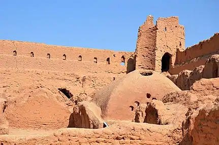 در کتب تاریخ یزد متعلق به قرن ۹ و ۱۰ هجری به این قلعه اشاره شده که میتوان از «تاریخ جدید یزد و جامع مفیدی» نام برد. دیواره اطراف قلعه با ترکیب و چینه با ارتفاعی بیش از ۸ متر و با تزییناتی در نمای بیرونی ساخته شدهاست. ضمن آنکه درب ورودی قلعه با طاق هلالی بلند در ضلع جنوبی قلعه واقع شدهاست.