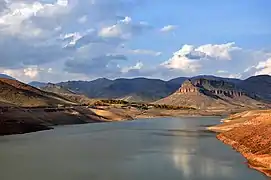دورنمای قلعه ضحاک عجبشیر از سد قلعه چایی
