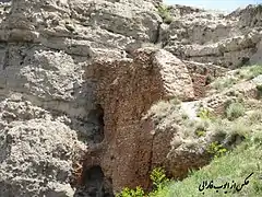 به غیر از قلعه در پای کوه قبرستانی نیز وجود دارد که در آن مجسمه سنگی قوچی قرار داشتهاست.