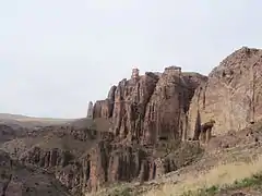 دورنمایی از خود قلعه (ضحاک) که از انتهای مسیر منتهی به قلعه ضحاک از جاده هشترود-میانه
